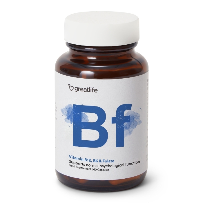 Vitamine B12, B6 & Folaat van Greatlife is een zorgvuldig samengestelde en goed bestudeerde combinatie van bioactieve B-vitaminen van de hoogste kwaliteit. Het product bevat vitamine B12 als methylcobalamine, vitamine B6 als Pyridoxal-5′-phosphate (actieve vorm) en folaat als Quatrefolic® (5-MTHF), de biologisch actieve vorm van folaat. Deze vitaminen spelen een centrale rol in de energiehuishouding van het lichaam, de werking van het zenuwstelsel en de vorming van rode bloedcellen. Ze dragen ook bij aan een normale psychologische functie en helpen vermoeidheid en uitputting te verminderen. Vitamine B12, B6 & Folaat van Greatlife is een hoogwaardig supplement met zorgvuldig gecontroleerde grondstoffen, vrij van additieven, verontreinigingen en kunstmatige stoffen.