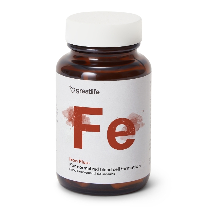 Iron Plus+ van Greatlife is een ijzersupplement van de allerhoogste kwaliteit, ontwikkeld ter ondersteuning van een normale bloedvorming, zuurstoftransport en energieproductie. Iron Plus+ bevat ijzer in bisglycinaatvorm met een hoge opname en goede maagverdraagzaamheid, in combinatie met vitamine C, B6, foliumzuur en vitamine B12. De formule is aangevuld met koper voor een normale ijzerstofwisseling. Iron Plus+ is vrij van onnodige toevoegingen en kunstmatige stoffen.
